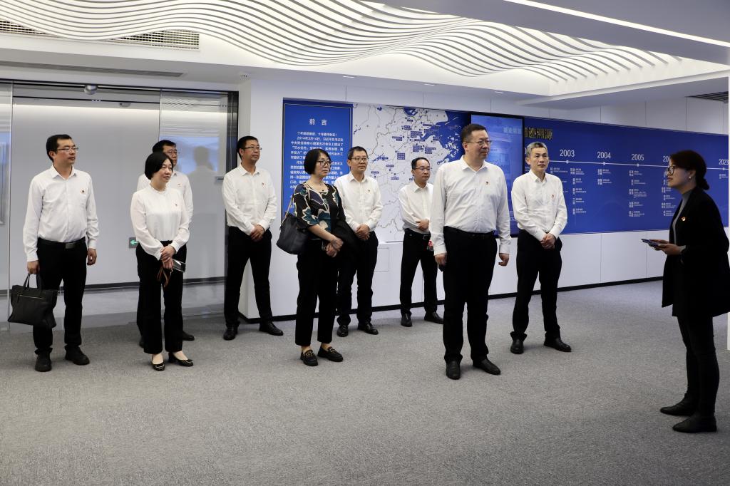第三站,一行人员走进省水利厅,参观浙江践行习近平总书记“节水优先、空间均衡、系统治理、两手发力”治水思路十周年展览。通过循迹溯源、笃行实干和奋进新征程三个篇章,学习了在习近平总书记治水思路指引下浙江水利十年来的实践历程、精彩蝶变,深刻领悟了习近平总书记治水思路的真理力量和实践伟力。