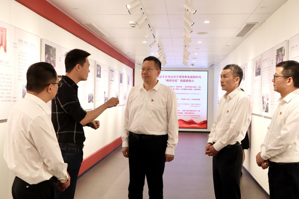 在诸暨“枫桥经验”陈列馆,新一届党委领导班子重走2023年9月习近平总书记重温“枫桥经验”时走过的考察路线,认真聆听学习“枫桥经验”诞生、演进、发展、升华和新时代“枫桥经验”在浙江探索实践的全过程,深刻感悟60年来“枫桥经验”一脉相承的发展历程和与时俱进的时代价值。大家表示,“枫桥经验”生动践行了党的群众路线,是做好群众工作的“传家宝”,是常学常新的“活教材”,要始终牢记“为党育人、为国育才”的初心使命,把“枫桥经验”坚持好、发展好,紧紧依靠万人大学师生力量,发挥“善治”功能,推动学校事业高质量发展。