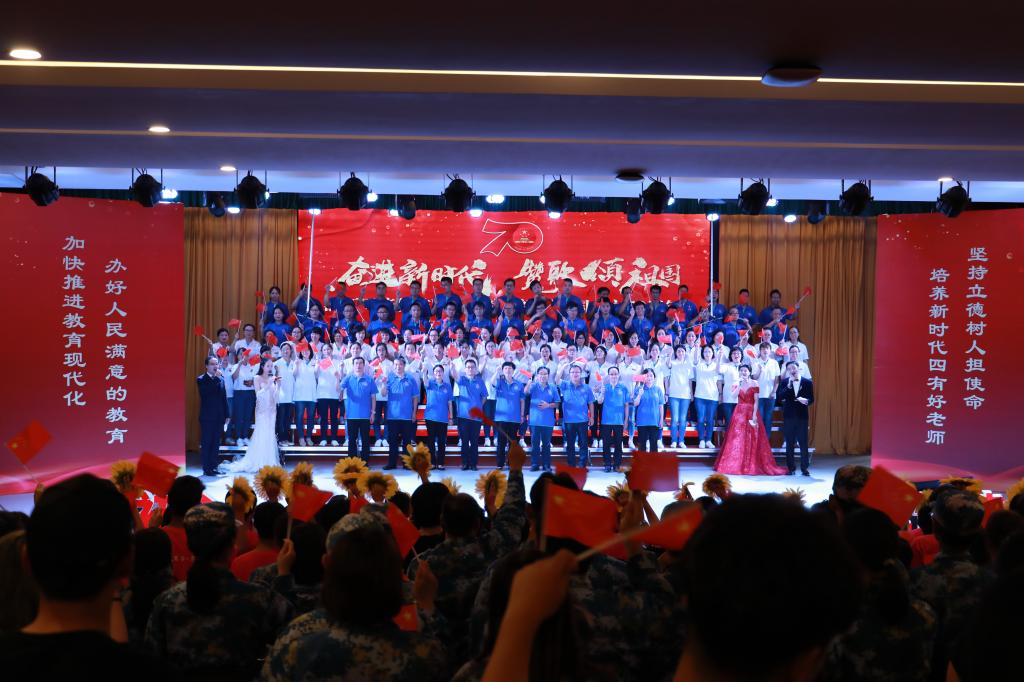 奋进新时代,赞歌颂祖国。为隆重庆祝新中国成立70周年,扎实推进“不忘初心、牢记使命”主题教育,9月29日下午,学院在瓯江楼小剧场举行庆祝新中国成立70周年师生专场歌咏会。五系师生和行政部门教师组成的6支合唱队,用嘹亮的歌声赞美祖国,抒发爱国情怀,喜迎国庆。