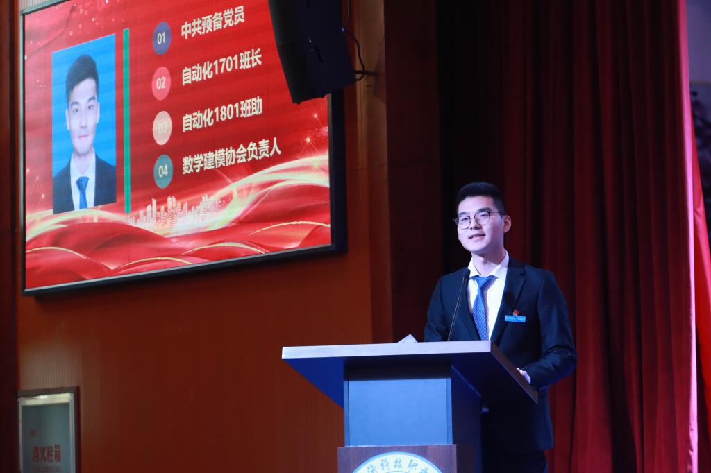 典礼上还播放了记录毕业生三年校园生活的温情视频、各系教师祝福视频等,优秀毕业生代表机电系周中意发表感言。
