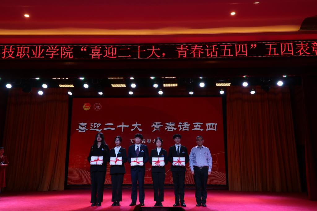 表彰大会上,与会师生还一同观看了庆祝中国共产主义青年团建团100周年宣传片《共青春》和情景剧表演《我是一名志愿者》,聆听了学校思政微课一等奖获得者郑传娟老师和王玉章同学带来的思政微课《让青春在追逐时尚中闪光》和《山河已无恙吾辈当自强》。