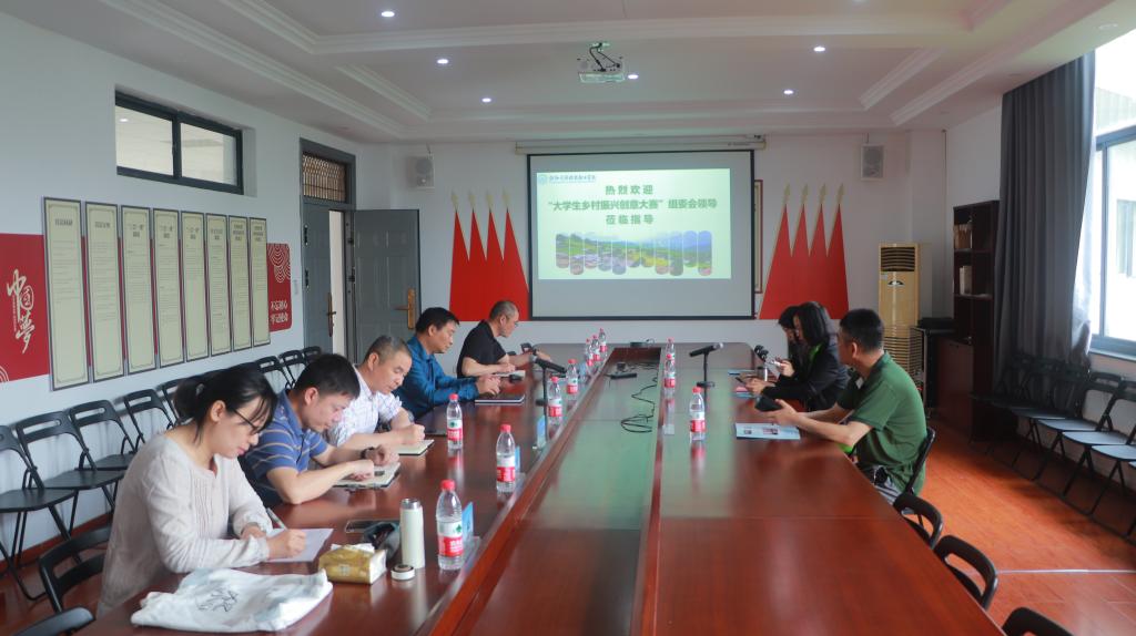 近年来,我校积极组织师生参与乡村振兴创意大赛,引导学子用乡村梦实现青春梦,助力乡村振兴,取得了一系列成果。2022年5月25日上午,浙江财经大学中国乡村振兴研究院院长、全国大学生乡村振兴创意大赛秘书长魏遐,率乡村振兴创意大赛顾问专家施春明、大赛秘书处王沁莹等一行莅临我校调研乡村振兴工作。学校党委委员、副校长朱兆平,教务处、艺术设计学院等相关部门负责人参加会议。
