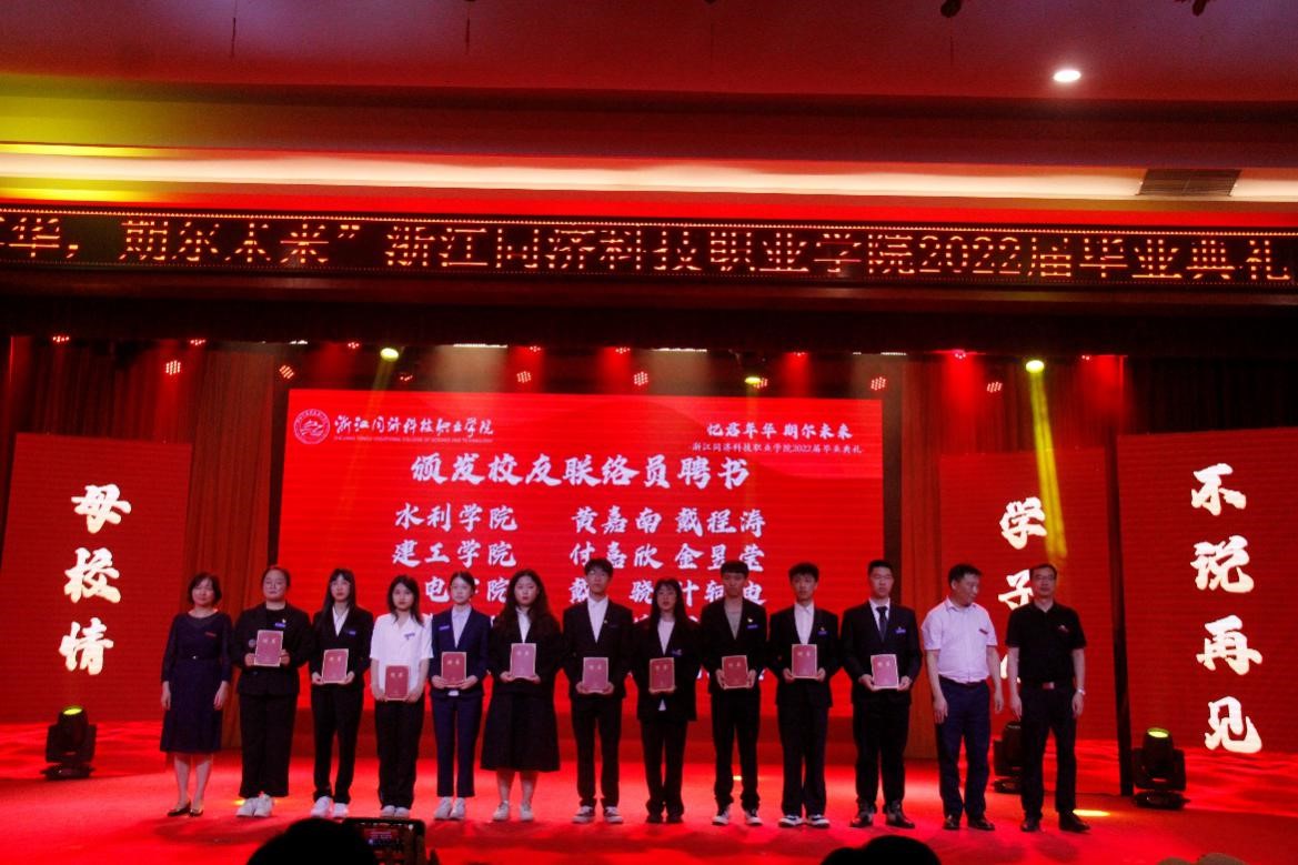 典礼上,学校党委书记江影和各二级学院师生给毕业生送上了线上临别祝福!公布了2022届毕业生校友联络员名单,并向新的校友联络员颁发证书。