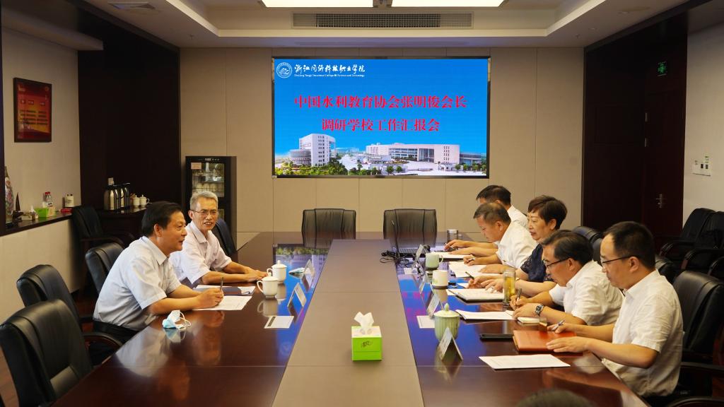 8月1日下午,中国水利教育协会会长张明俊在协会副会长兼秘书长王韶华陪同下调研了学校教育教学改革发展情况。校领导班子和有关部门负责人参会。