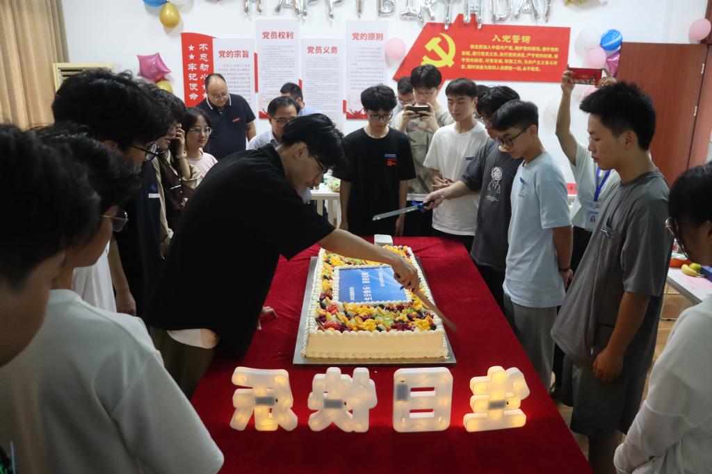 生日会上,“小寿星”们依次做了精彩的自我介绍。随后,宣传部部长吴敏启为新生佩戴校徽,校长梁国钱为新生送上了学校精心准备的生日加油包。梁国钱校长代表全体师生欢迎新同学的到来,深情送上生日祝福,并与“小寿星”们一起切蛋糕,勉励同学要好好学习,牢记责任担当,为目标和理想不懈奋斗,开启新的人生征程。