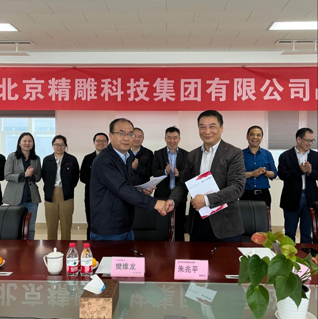 11月11日上午,我校与北京精雕科技集团有限公司举行校企合作、战略合作协议签约仪式,双方就建立产学研长期合作关系、深化人才培养等方面达成全面合作共识。校党委书记江影、副校长朱兆平,北京精雕集团党委书记兼执行总裁吴爱军、执行副总裁樊维龙、总经理魏慎国、教育运营总监于洋出席,校办公室、合作处、教务处及机电学院负责人等参会。仪式以线上线下相结合的方式举行,由于洋主持。