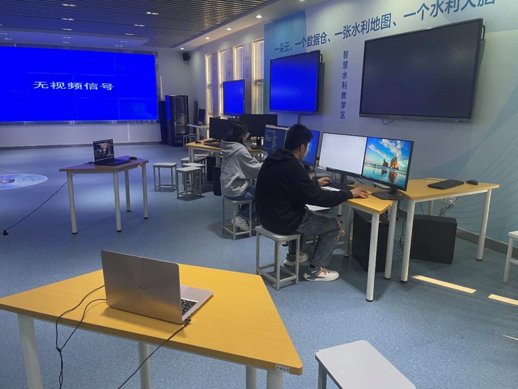 我校选手在校河道修防虚拟仿真实训室内在线参赛