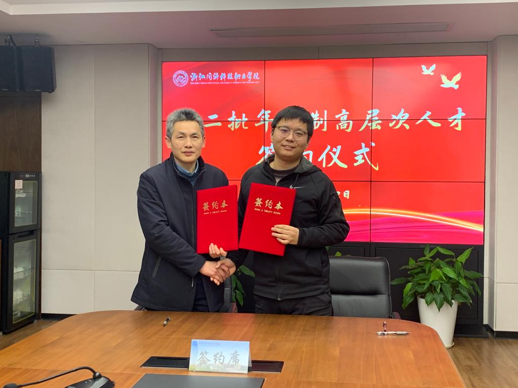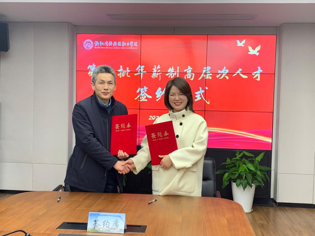 王卫标校长与各教师逐一签订协议,并对入选本批年薪制高层次人才的三位老师表示了祝贺。他指出,重视培养和成就人才,是我们党历经百年带领全国人民将中国特色社会主义事业从胜利走向胜利的关键所在,同时也是我们职业院校“提质培优”、深化产教融合和高质量发展职业教育的底气所在。我们学校应积极发挥后发优势,坚定不移实施人才强校战略,不断激发人才创新活力。同时他也对新入选的年薪制高层次人才和学校相关部门提出了新希望:一是希望年薪制高层次人才再接再厉,进一步主动担当作为,以更加饱满的热情和干劲投入到学校事业的快速发展中去;二是希望年薪制高层次人才不忘育人初心,做新时代“四有”好老师;三是希望学校各部门单位要为年薪制高层次人才的发展提供优质服务,激发人才发展内生动力。