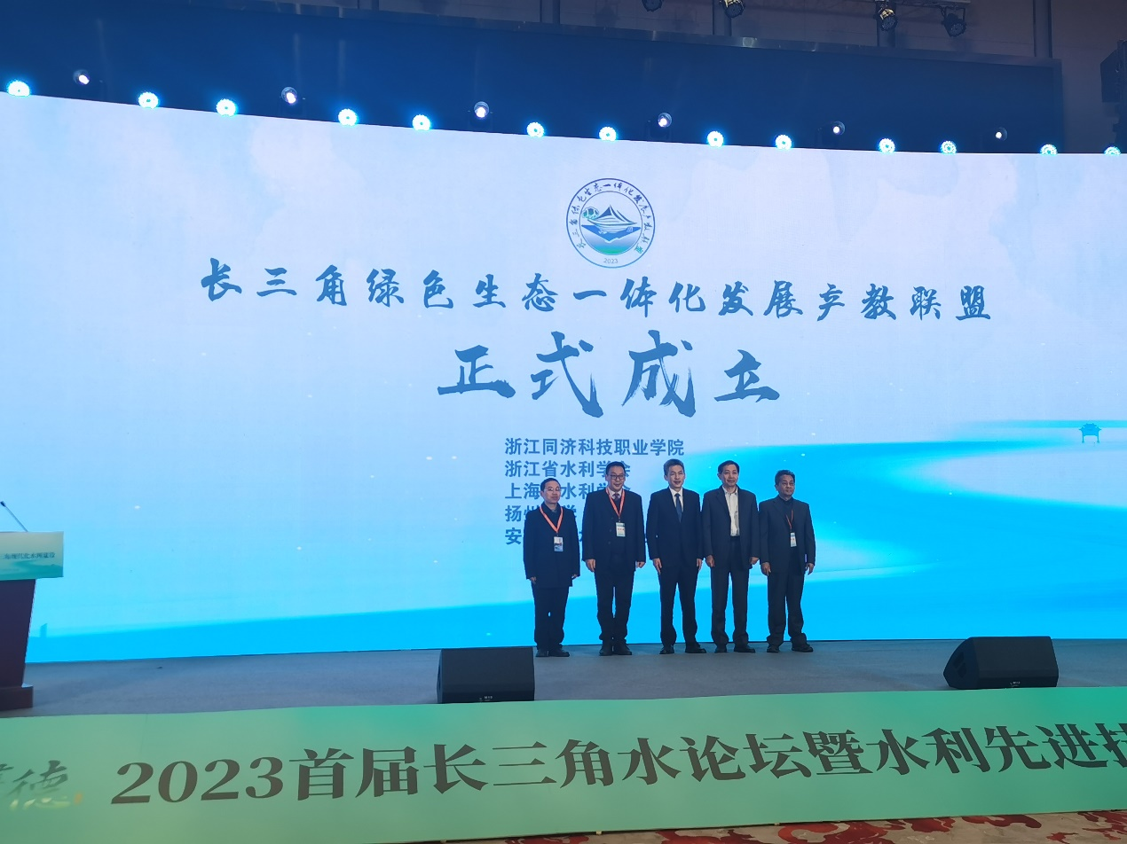 3月30日上午,在首届长三角水论坛开幕式上,由我校牵头,浙江省水利学会、上海市水利学会、扬州大学、安徽水利水电职业技术学院等单位联合发起的长三角绿色生态一体化发展产教联盟正式成立。水利部太湖流域管理局总工程师、一级巡视员林泽新、浙江省水利厅一级巡视员杨炯、中国水利学会副秘书长鲁胜力、浙江省科学技术协会副主席武传宇、浙江省长三角办副处长徐毅等领导出席仪式并致辞。
