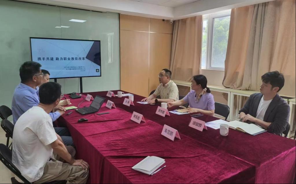 东方电子产业园是杭州最大的电子园,国家级电商示范园,也是杭州数字产业学院的重要基地。赢动教育集团总裁崔立标介绍了数字产业学院的主要应用领域,包括教材联合开发、课程资源建设、师资培训、实训中心建设、校内创业孵化中心和校外实训基地及实习就业服务六大模块。他还介绍了电子商务的前沿趋势数字人和本地生活的应用,双方就深化合作、学生培养、就业指导进行了深入的交流并交换了意见。会后,姜伟副校长一行到多家学生实习企业进行参观访问,包括上市公司聚大集团、授渔科技和电商丝绸单品类销冠企业钱皇丝绸,全面了解了实习企业的业务范围和实习学生的工作动态。