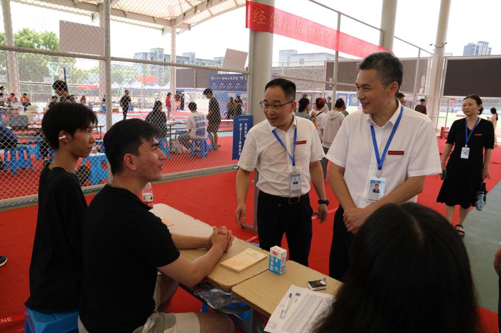 党委书记张勇,党委副书记、校长王卫标等校领导来迎新点欢迎新生及家长