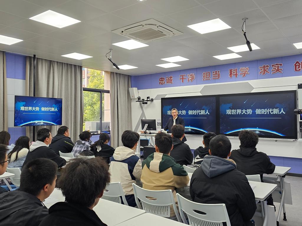“思政课是一门什么样的课,它到底想教给我们什么?”“百年未有之大变局‘变’在何处?”……11月16日,学校党委副书记、校长王卫标以《观世界大势 做时代新人》为题为大禹班2023级全体学生讲授思政课,与青年大学生共同探讨世界格局变化带来的影响,分析职教学生担负的责任和使命。