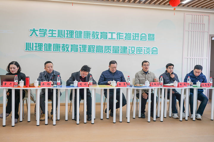 为推动心理健康教育课程高质量发展,提升心理工作队伍服务水平,1月4日上午,心理健康教育工作推进会暨心理健康教育课程高质量建设座谈会在学校大学生心理健康教育指导中心举行。学校党委书记张勇出席会议并讲话。会议由校党委委员、副校长吴敏启主持。学工部、教务处、各二级学院党总支等相关部门(单位)负责人、心理健康教育指导中心全体人员、全体心理辅导员和心理健康教育课程专兼职教师参加座谈。