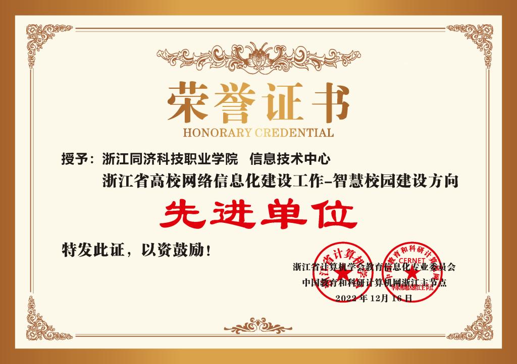 自第二次党代会以来,学校紧紧围绕立德树人根本任务,抓住高质量发展新机遇,贯彻新发展理念,加快推进智慧校园建设和数字化改革,夯实数字校园基础底座,建成一批核心业务系统,整合一批业务数据,实现驾驶舱数据融合贯通,打造一批多跨协同典型应用,应用数字技术赋能教育教学改革,推进以数字变革为引领的校域整体智治,着力打造“数智同科”智慧校园。学校连续三年在浙江省智慧校园评价中名列高职院校前茅,入选浙江省教育数字化改革典型案例,成功入选省教育厅数字教育试点单位,荣获省高校网络信息化建设工作先进单位等荣誉,浙江日报专刊报道我校数字化改革成效。