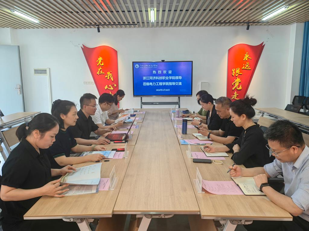 4月25日,调研组来到广西水利电力职业技术学院调研交流。广西水利电力职业技术学院副校长周涛、电力工程学院党总支书记罗宇强等参加交流会。双方与会人员围绕新设学科专业建设、师资队伍、课程建设等方面进行深入交流。副校长周涛、党总支书记罗宇强介绍了广西水利电力职业技术学院的整体情况、办学特色、电力行业办学历史、专业品牌建设、技能竞赛等,期待加强两校之间交流活动,共同促进双方教育理念更新和教学质量提升。