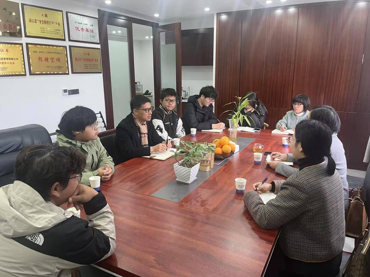 在温州长江工程项目管理有限公司,总经理叶素策详细介绍了公司发展历程、业务板块、岗位设置、招聘需求等。吴玲洪勉励在岗实习学生要向企业导师虚心学习,在实践中提高专业技能,同时也要注意实习期间的人身安全。