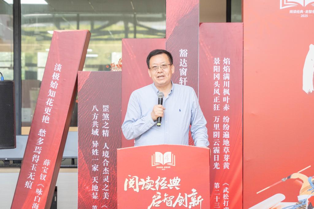 四月芳菲日,正是读书时。4月23日,以“阅读经典 启智创新”为主题的学校第十四届读书节在图书馆一楼大厅正式开幕。学校党委书记张勇,党委委员、副校长姜伟出席活动,相关部门负责人、图书馆工作委员会成员及师生代表参加,开幕式由党委委员、工会主席吴玲洪主持。