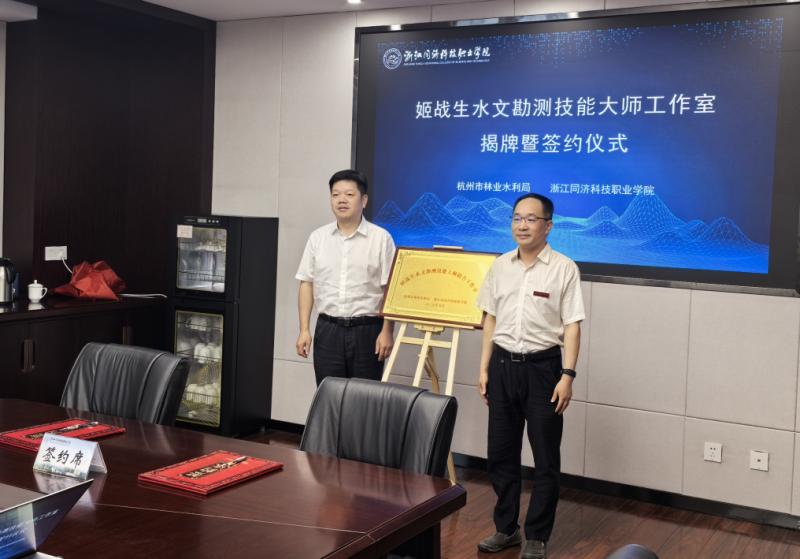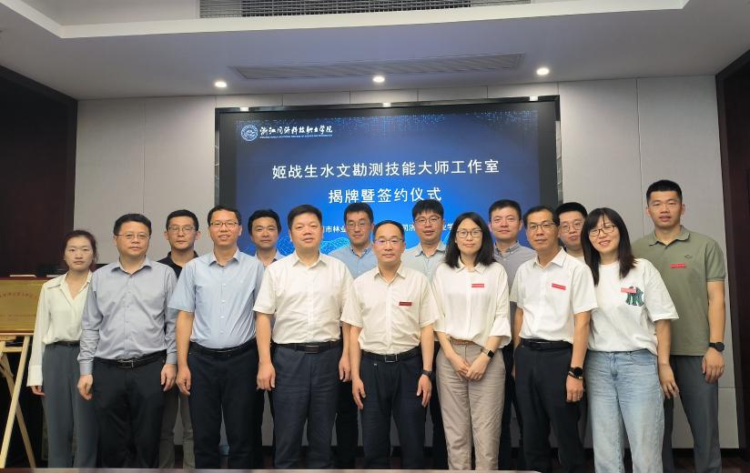 5月30日,学校与杭州市林业水利局举行“姬战生水文勘测技能大师工作室”签约揭牌仪式。学校党委委员、副校长姜伟,杭州市林业水利局党组副书记、副局长姚伟明出席活动。杭州市林业水利局组织人事处、水文水资源监测中心负责人,学校人事处、发展合作处、水利工程学院等相关部门负责人参加活动。