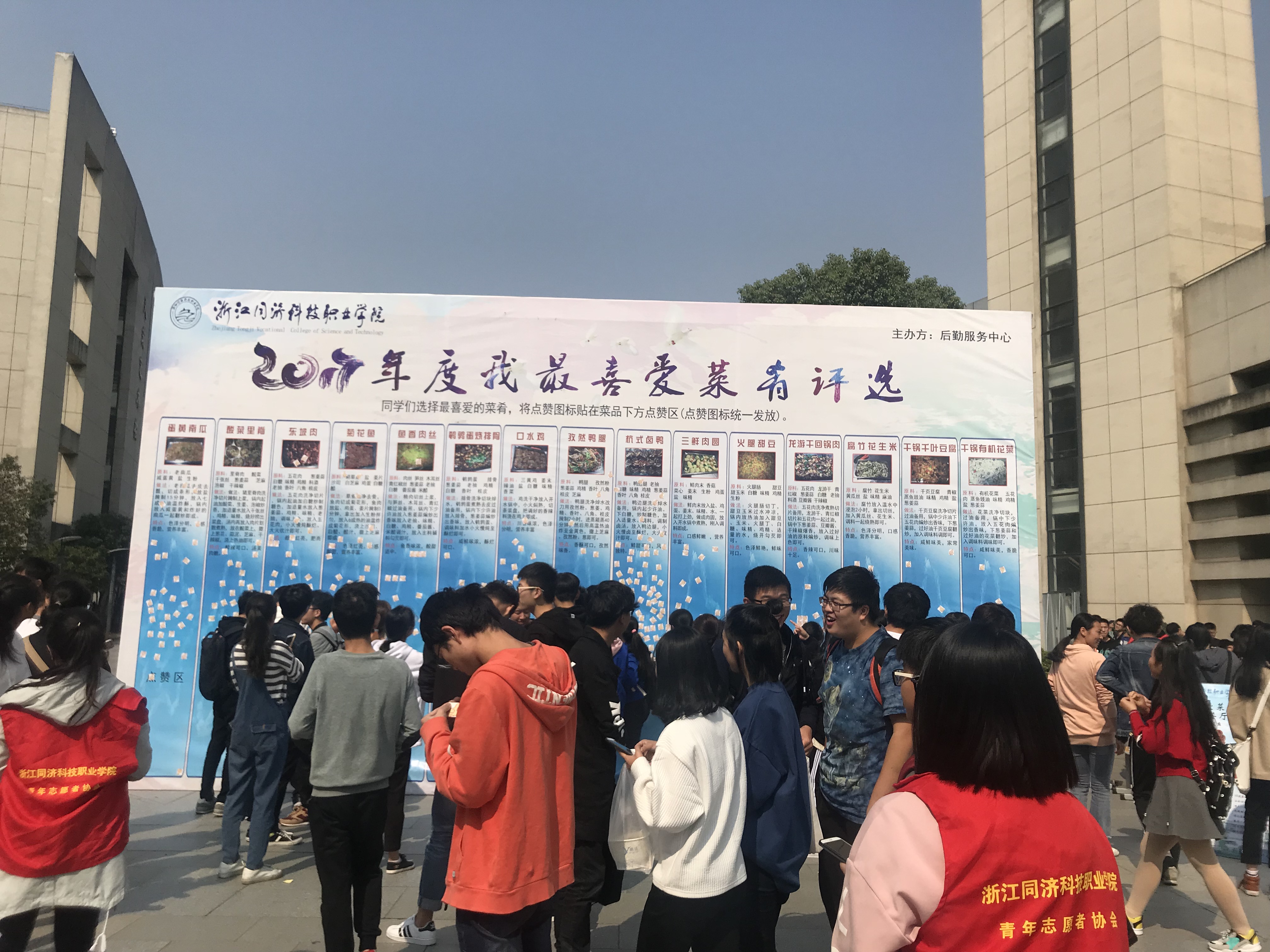 10月25日中午,在学院餐厅门口的小广场上,“我最喜爱的菜肴”评选现场点赞活动正如火如荼地进行着,千名师生纷纷为自己喜爱的菜肴点赞。