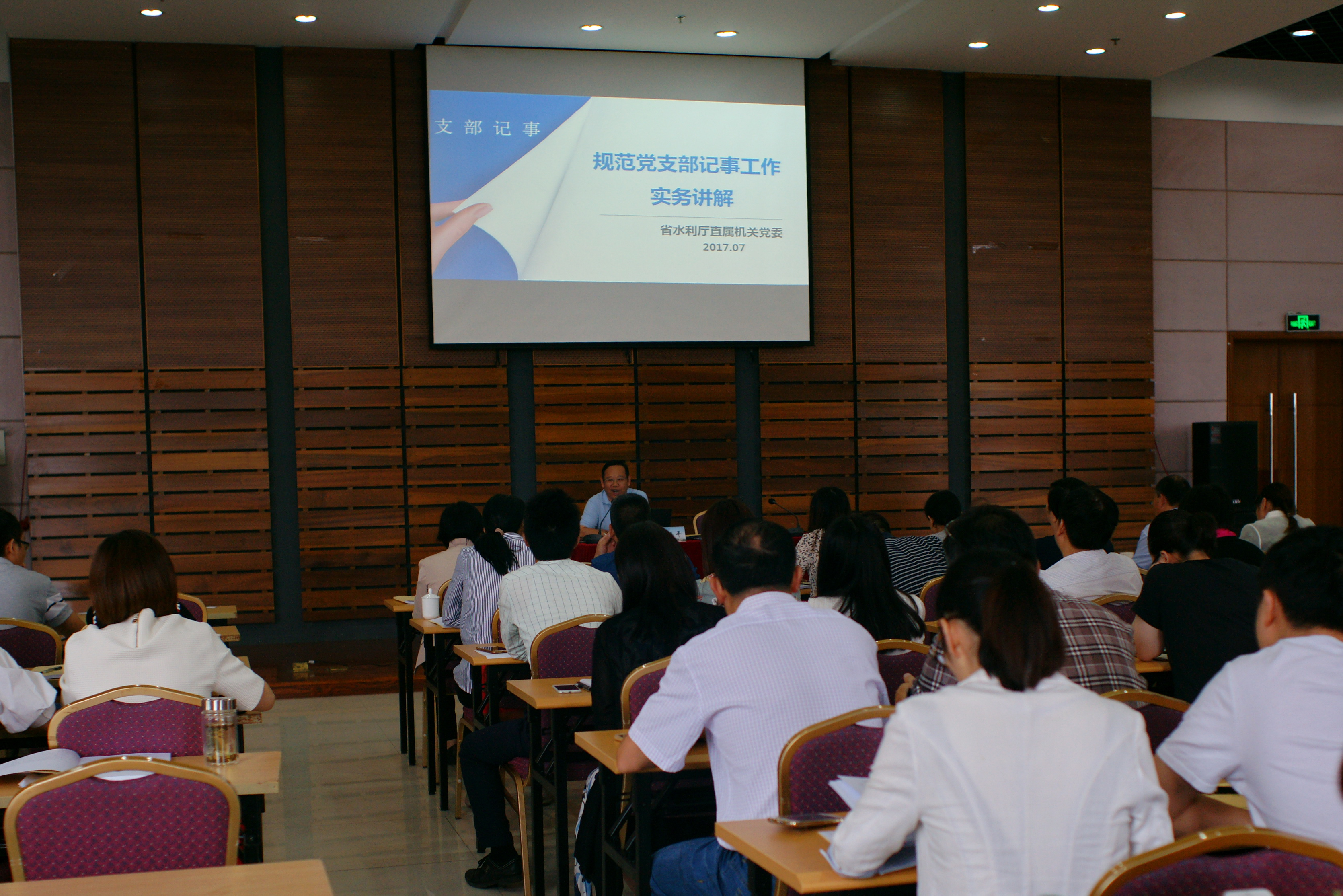 9月29日下午,省水利厅直属机关党委副书记董福平在行政楼三楼多功能厅为学院基层党支部(总支)书记、委员作《规范党支部记事工作》专题培训。讲座由学院党委副书记、副院长江影主持。