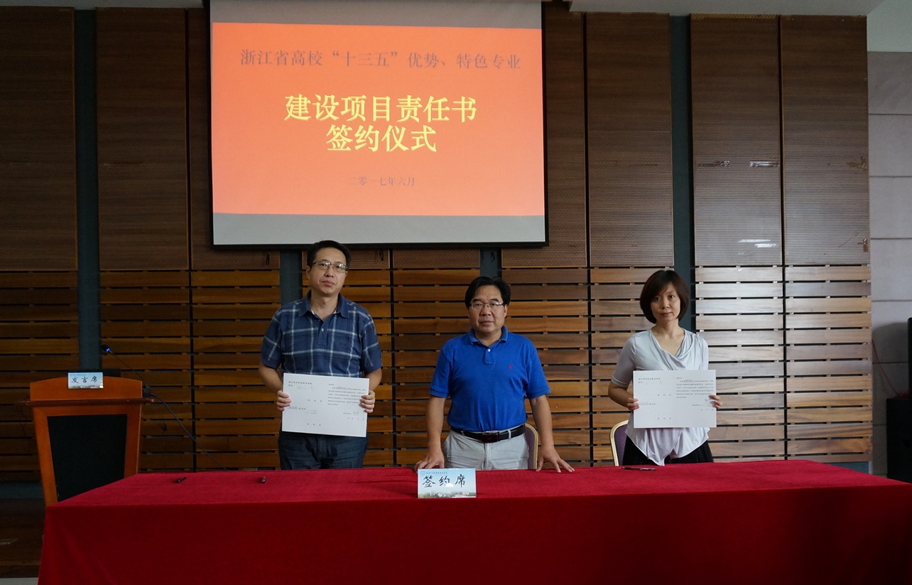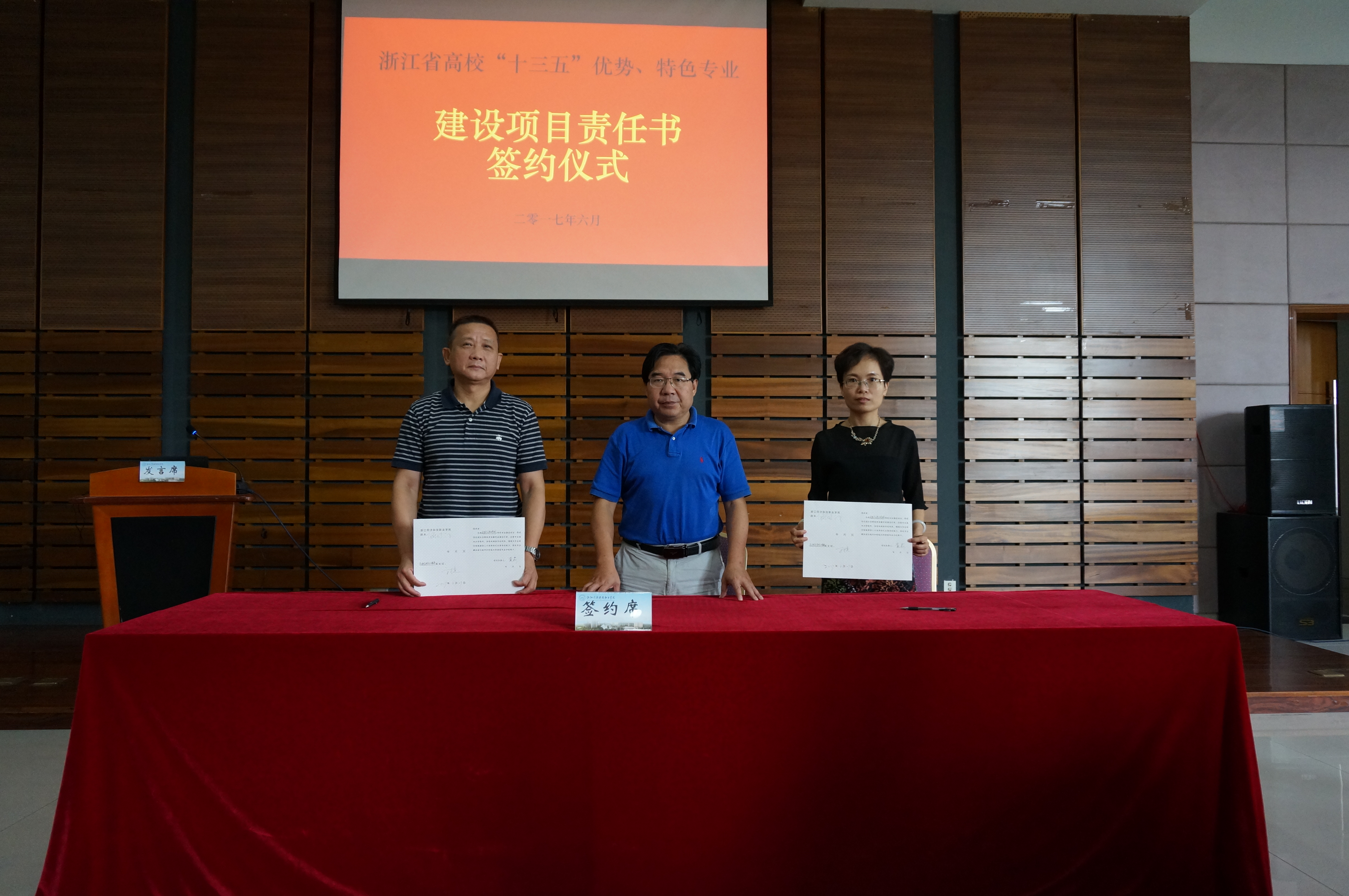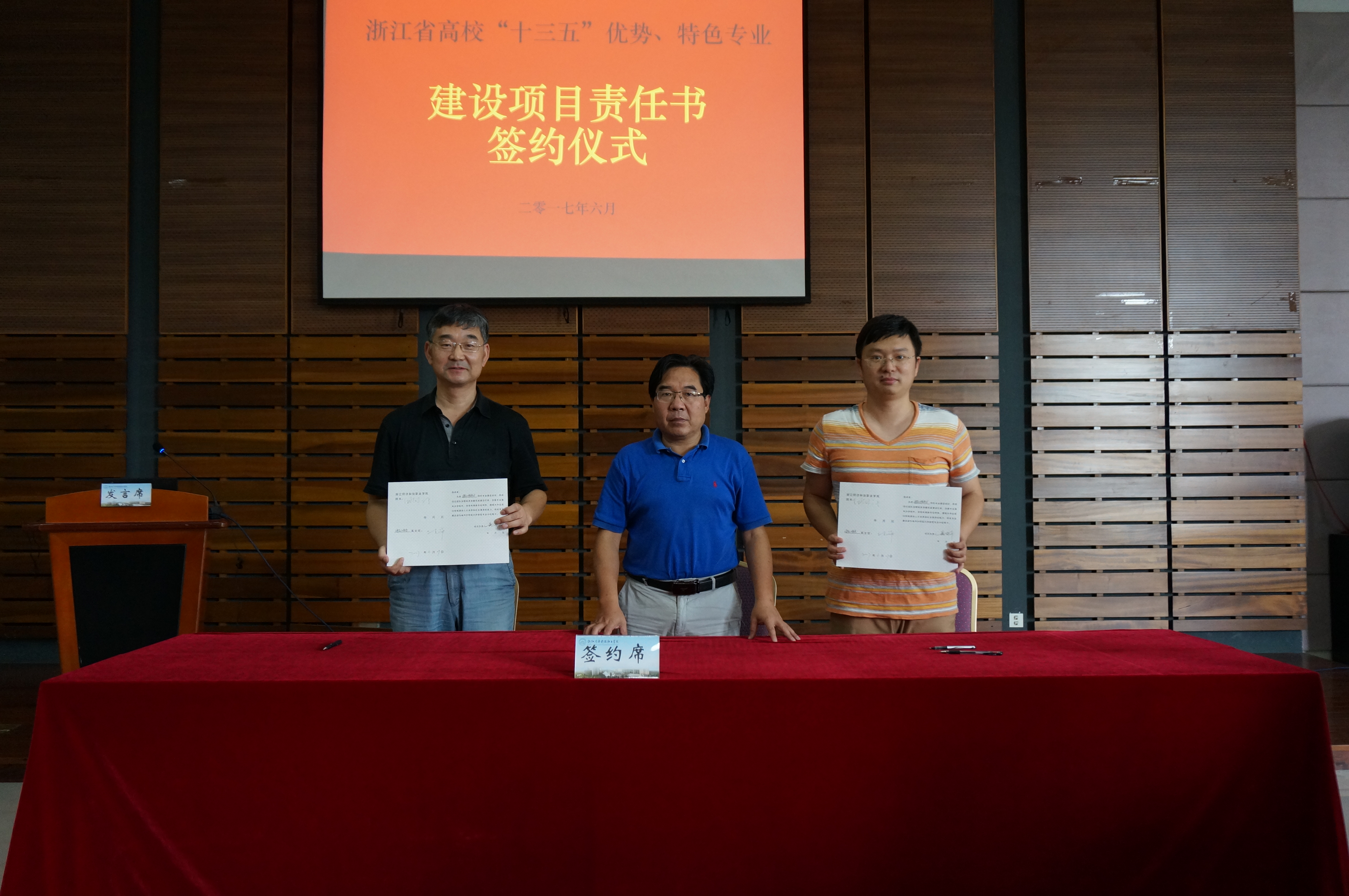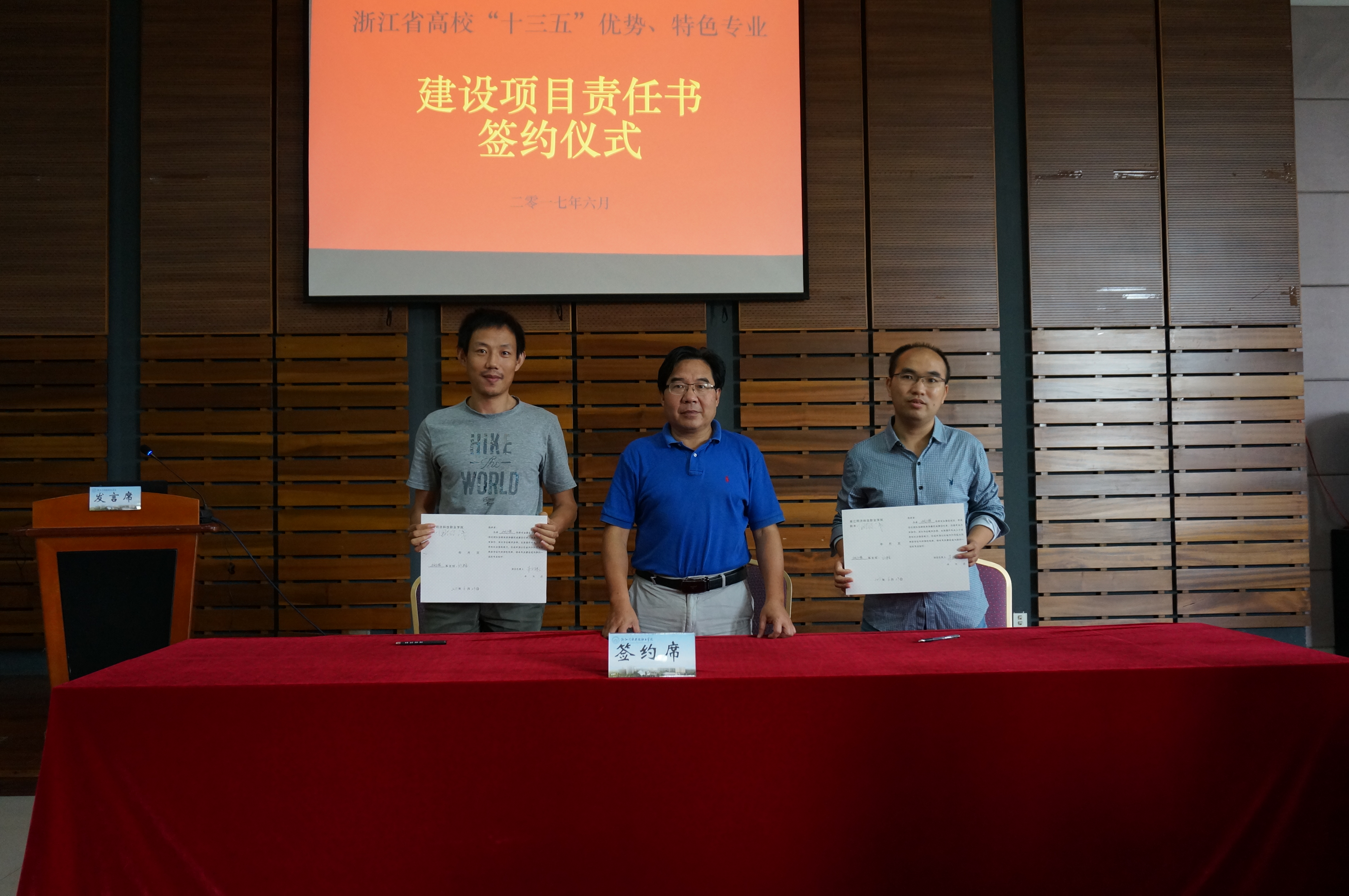 随后,举行了专业建设项目目标责任书签订仪式,院长梁国钱代表学院分别与六个专业所在系的系主任和专业建设项目负责人一起,签订了《专业建设项目责任书》。