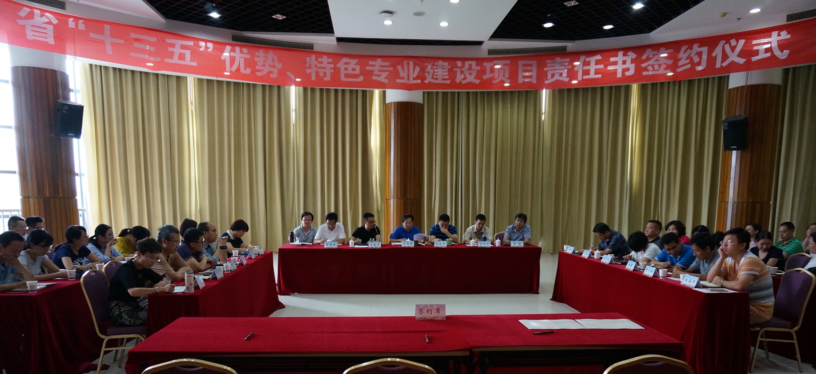 6月29日下午,学院在行政楼三楼多功能厅举行了省“十三五”优势、特色专业建设项目责任书签订仪式,学院院长梁国钱及部分院校领导出席了签订仪式。教务处、人事处、发展合作处、教学督导评价中心、五系一部负责人及优势、特色专业建设团队成员参加了本次会议。会议由副校长王建华主持。