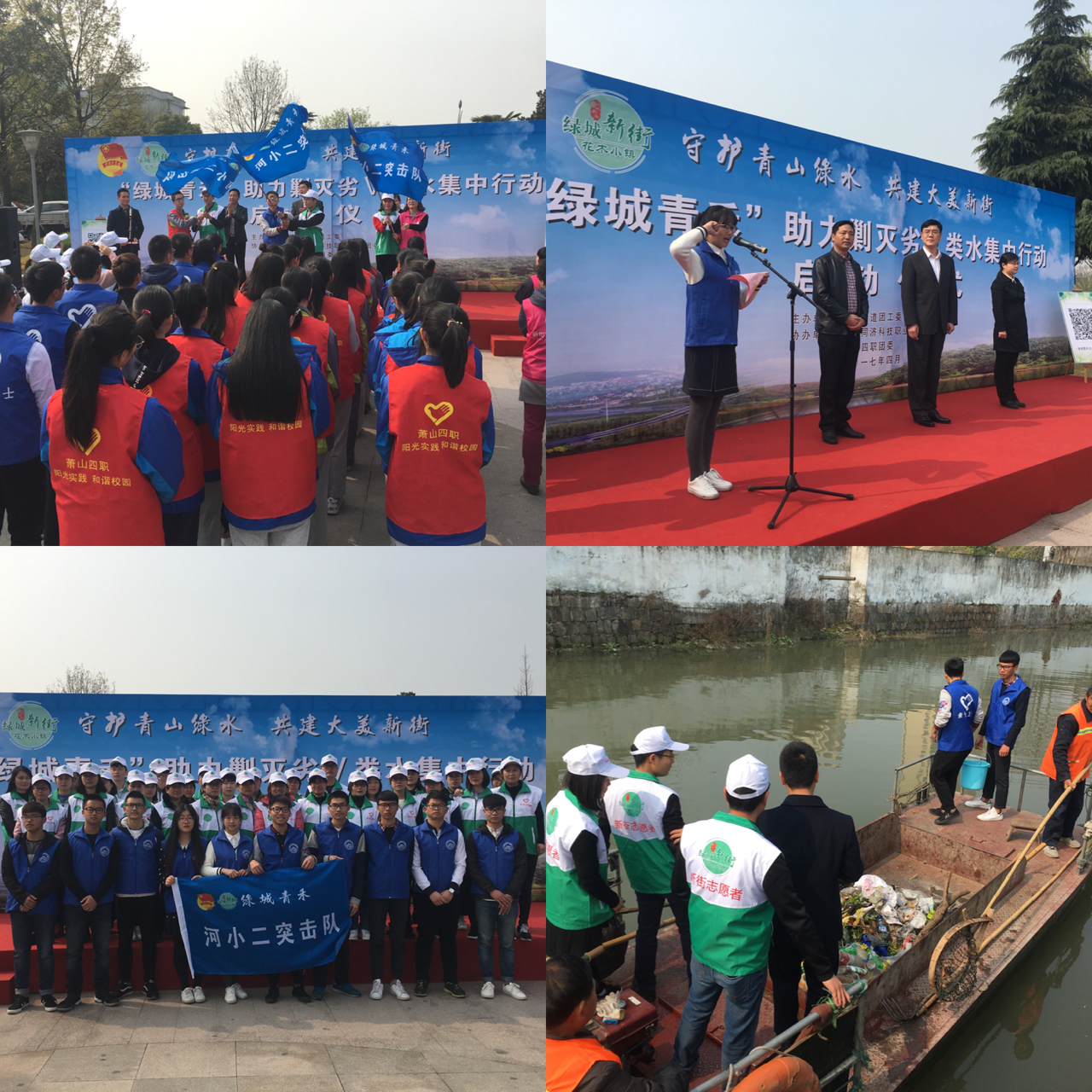 为以校地共助形式做好全面剿灭劣V类水工作,4月1日,我院团委联合新街街道团工委共同举办“绿城青禾”助力剿灭劣V类水集中行动启动仪式。新街街道党工委书记汤卫,团区委副书记孔美华,新街街道党工委副书记袁勇刚出席本次仪式。我院团委老师带领学生志愿者、新街街道各村社区志愿者、萧山四职学生代表以及新街四小少先队员代表参加仪式。