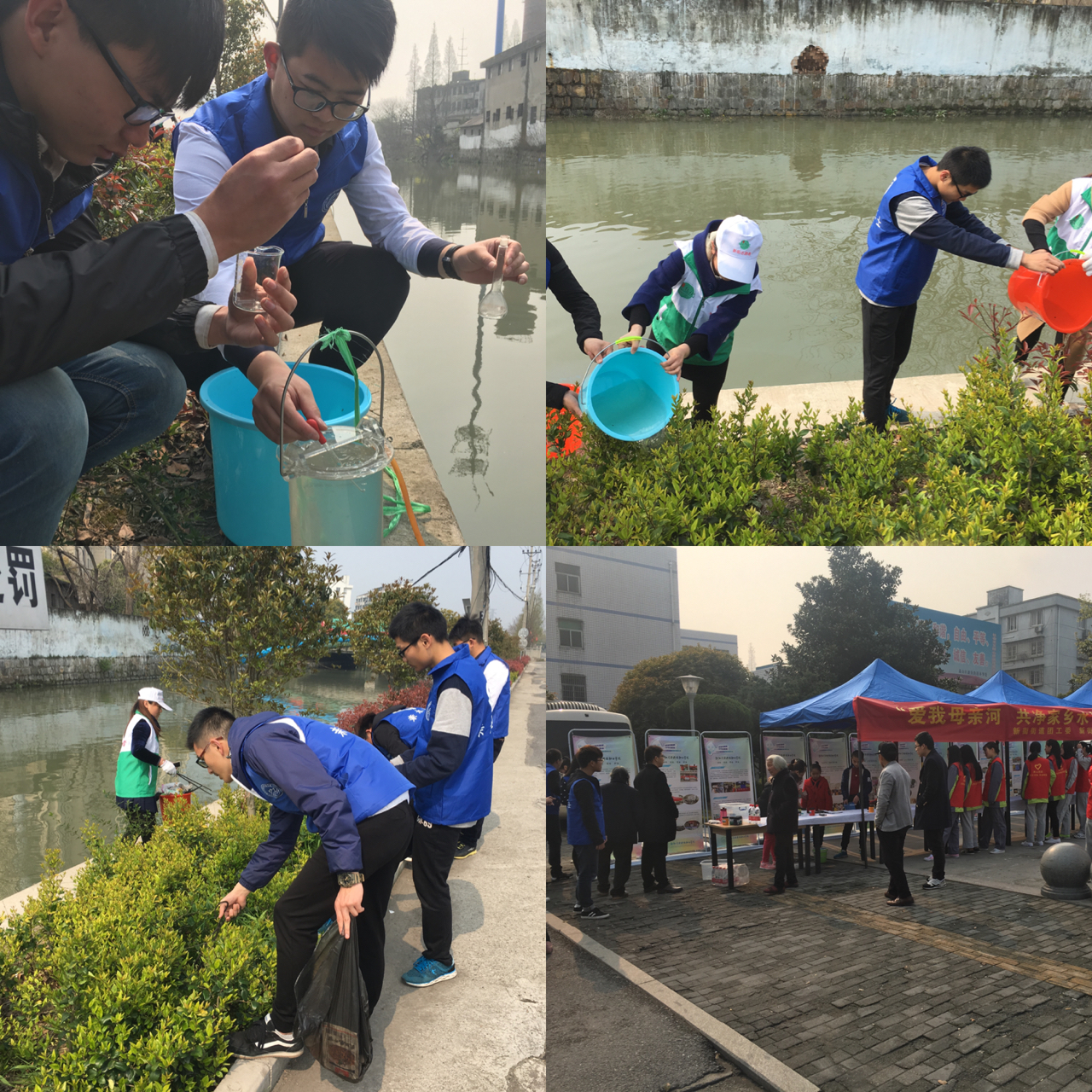仪式结束,我院志愿者与新街街道青禾志愿者一起, 开展“五水共治”宣传展板介绍和治水宣传单的分发等宣传活动,并赴新街初级中学附近河道,进行垃圾清理、检测水质、浇灌岸边花草树木等多项实践活动。