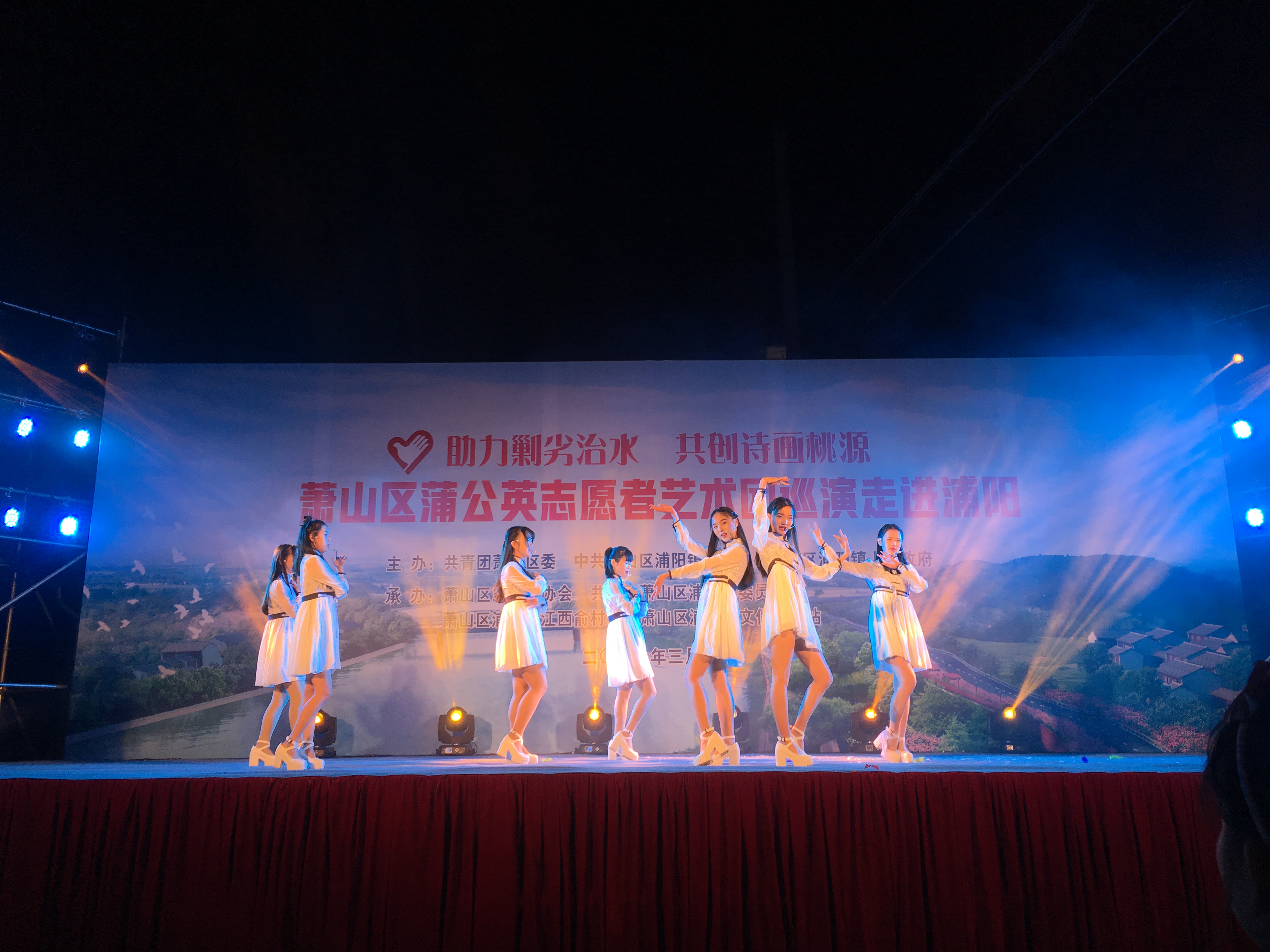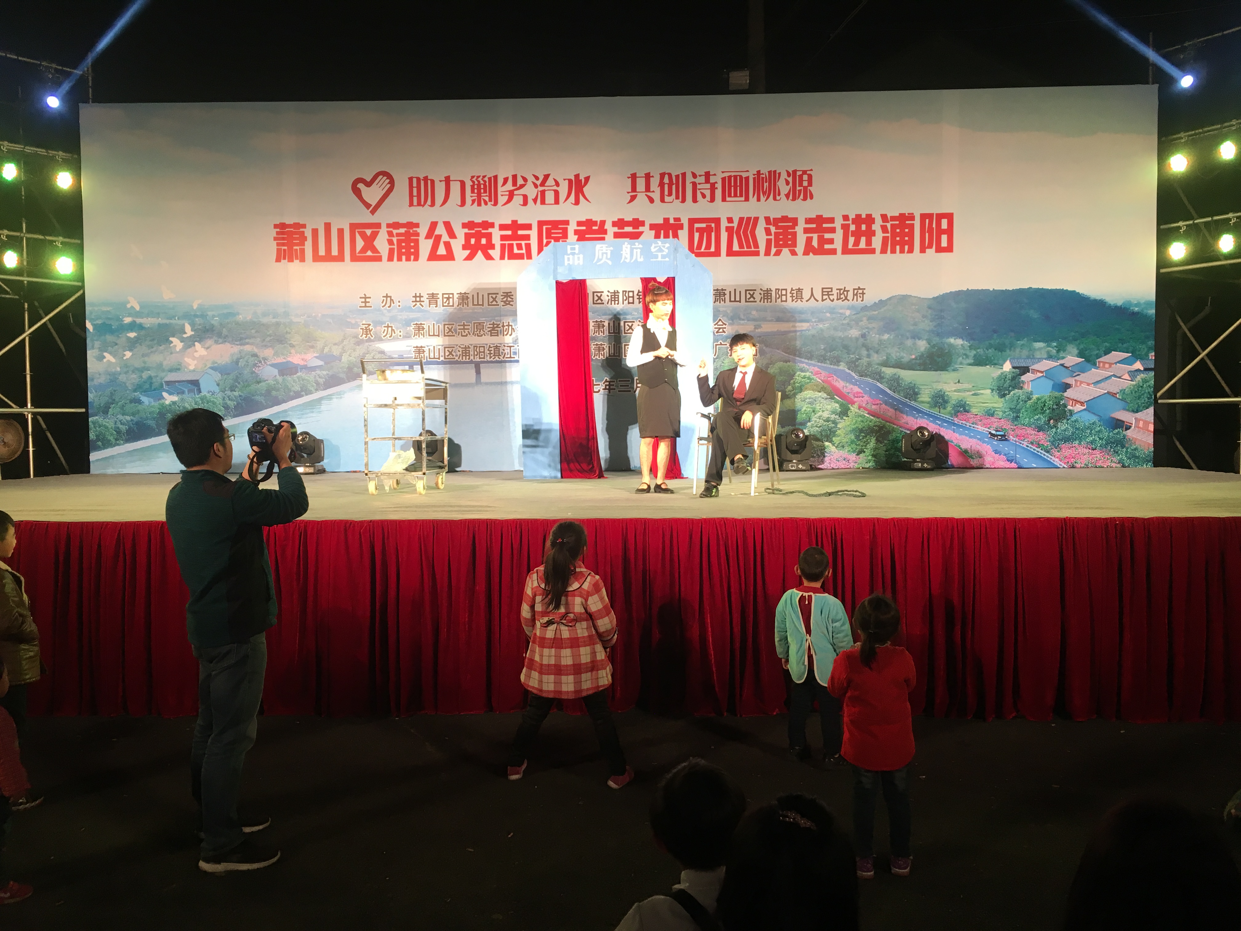 2017年3月27日晚浦阳镇江西俞村,院团委组织“亲水”文艺小分队与共青团萧山区委一同开展“志愿助力剿劣治水 你我共创诗画桃源”文艺晚会。