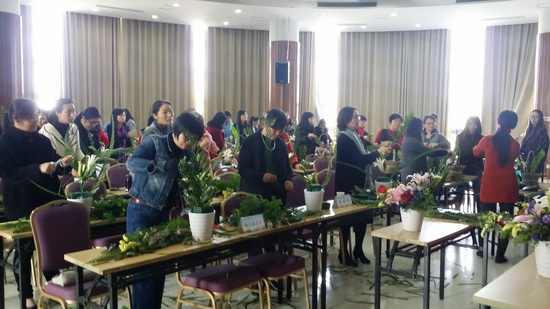 在一年一度的“三八”妇女节到来之际,3月8号下午,学院工会女工委在行政楼三楼多功能厅,举办了“快乐工作•幸福生活”女职工插花艺术培训。学院江影副书记、沈燕副院长、党委委员吴玲洪、工会主席陈玉阳和一百多位爱好插花艺术的老师一起参加了培训,共同学习插花艺术,现场创作插花作品。