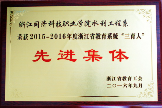 日前, 2015-2016年度浙江省教育系统“三育人”先进集体评选结果揭晓,我院水利工程系喜获先进集体荣誉称号。