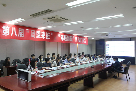 5月27日下午13:30,我院第八届“周恩来班”、“邓颖超班”汇报评审会在行政楼二楼会议室举行。评审会由学院副院长吴宏平主持,“周恩来班”、“邓颖超班”创建工作领导小组成员、各系教师代表及学生代表等20人组成评委团对候选班级进行汇报答辩打分,10名候选班级代表参加了汇报答辩。