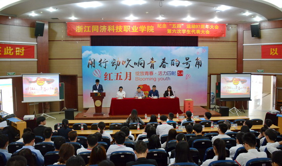 下午,学院纪念“五四”运动97周年学生干部大会、第六次学生代表大会在图书信息楼报告厅隆重召开。党委书记丁坚钢、党委委员副院长吴宏平、学工部副部长团委副书记叶乐、杭州市学联执行主席张雯雯以及各系党总支书记、各系团总支书记出席会议,全院296名学生代表参加会议。