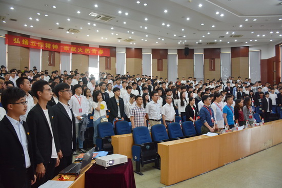 当天清晨,学院在校田径运动场主席台前举行了五四国旗下宣誓活动。院团委各部门负责人、翔宇大学生骨干精英学校、学联主席团及主要负责人、各系团副、各支部团三委等人参加宣誓活动。此次五四宣誓活动是学校为纪念五四运动97周年对学生的一次教导。学院结合我院实际和学生特点,开展一系列体现人文关怀、文化创意、青春活力主题的纪念活动,努力营造浓郁热烈的节日氛围,引导广大团员青年自觉把个人的成长进步和祖国发展紧密联系在一起,奋力开创我院共青团事业科学发展新局面。