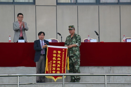 最后,梁国钱院长向承训部队赠送了锦旗。至此,2015级军训结业典礼结束,划上了圆满的句号。