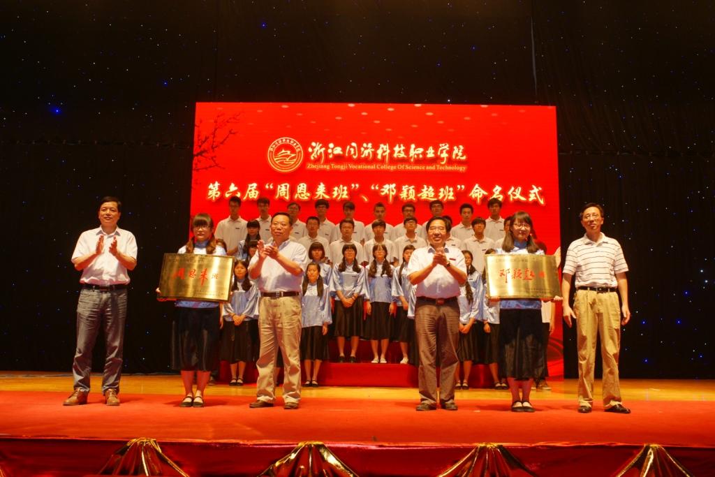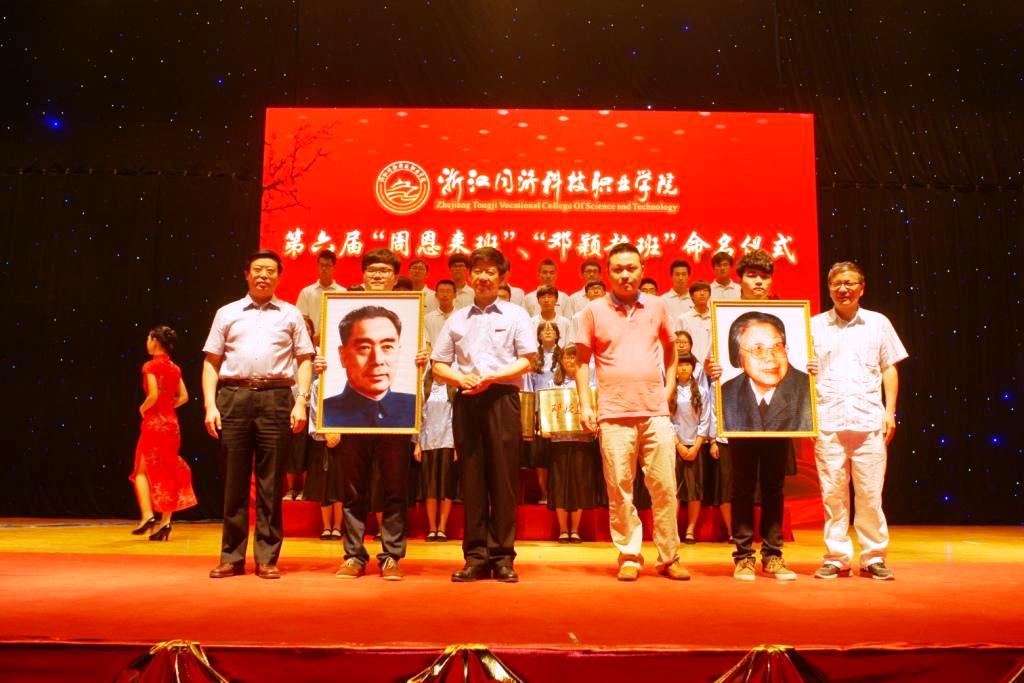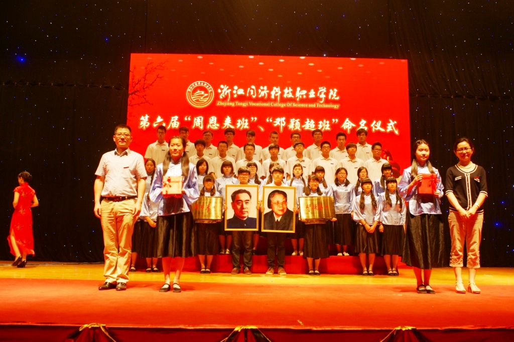 学院第六届“周邓班”评选活动最终命名工程造价13-03班为“周恩来班”,工程造价13-02班为“邓颖超班”,并授予装饰艺术设计13-01班、机电一体化技术13-01班、建筑设计技术13-01班为“周邓班”创建奖。与会水利厅领导、学院领导及校友代表为获奖班级颁发了“周邓班”铜牌、伟人画像及伟人纪念章。