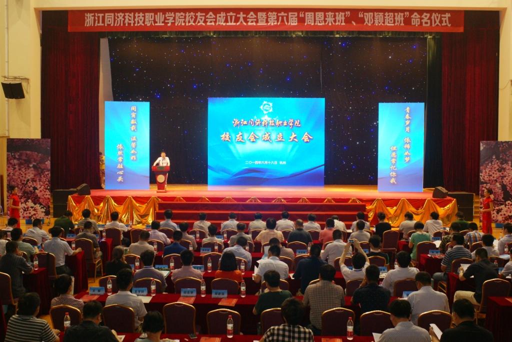 院长梁国钱代表学院致辞。他向出席成立大会的校友代表表示热烈的欢迎和衷心的感谢。他指出,回首五十五年的风雨历程,学院始终关注浙江的水利民生,以服务浙江经济发展为使命,在顺境中乘势而上,在逆境中矢志不移,在创业中精诚团结,在守业中居安思危,在竞争中敢为人先,在合作中优势互补,在成绩面前戒骄戒躁,在问题面前迎难而上,为浙江省的高职教育事业和经济社会发展做出了积极的贡献。如今,学院已成功跻身于全国水利高职教育示范院校建设单位行列,不断完善人才培养模式,教育教学成果丰硕累累,科研水平显著提升,师资队伍建设卓见成效,学生参加各类竞赛成绩喜人。他希望广大校友能一如既往地关注母校,在校友会的旗帜下,积极为母校的建设建言献策、添砖加瓦,共同为把母校建设省内一流、国内有影响力的高职院校而努力。