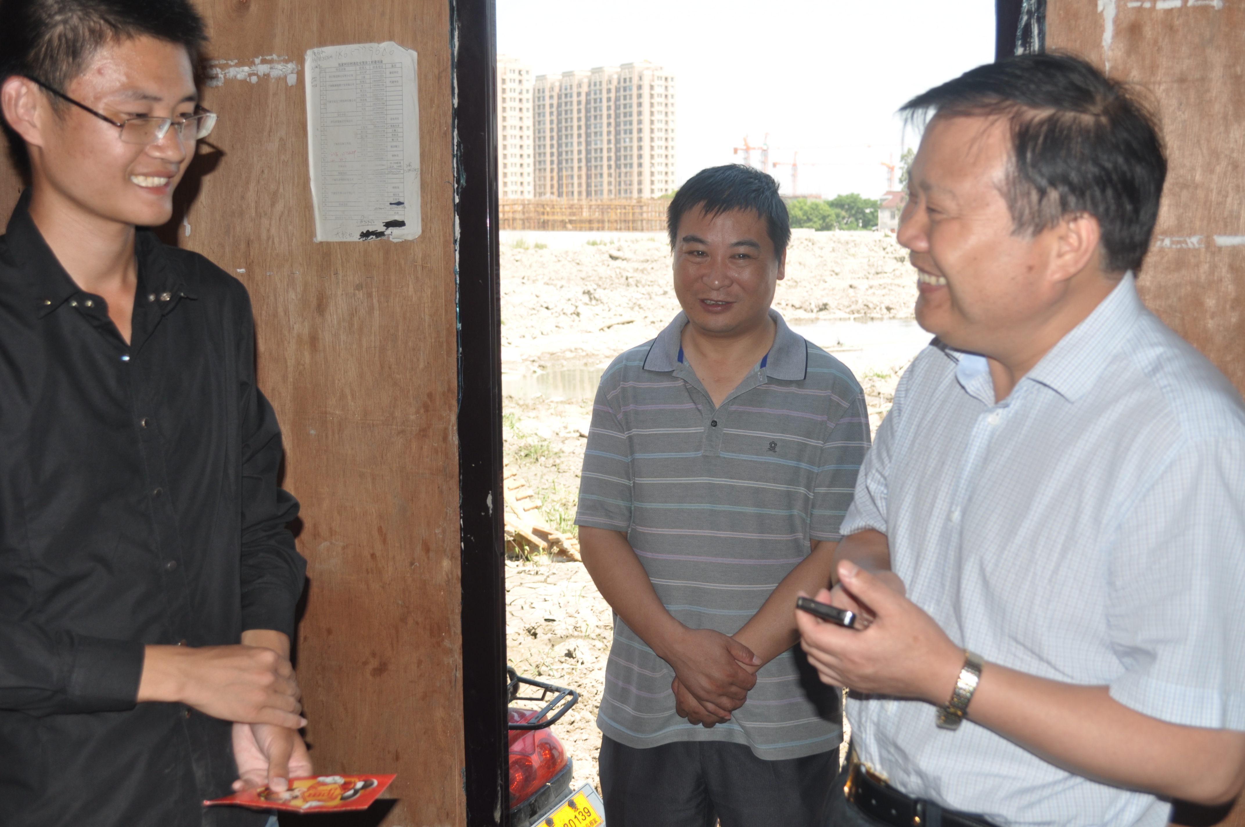 7月29日,院党委书记丁坚钢在建筑系主任朱兆平等相关人员陪同下,来到宁波江南路安置房施工工地,现场慰问了正在顶岗实习的胡庆阳同学。丁书记在工棚内与其进行了亲切的交谈,了解他的工作和生活情况,得知现在正在打桩实习,丁书记联系自己的经历,告诉胡同学自已当年也曾是一位打桩工,并鼓励他要虚心向老师傅学习,遵守操作规范,努力学好基本功,为今年走上工作岗位打下坚实的基础。丁书记还向他送上了慰问金和慰问品,亲切地叮嘱他要注意身体,做好劳动保护,尤其是要做好安全工作。
