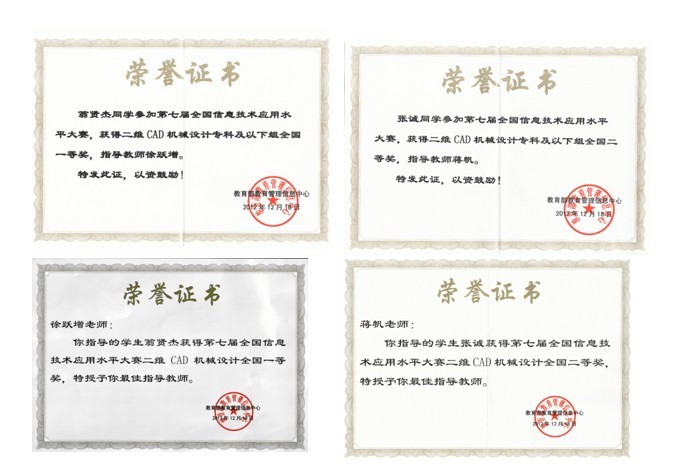 12月18日,由教育部教育信息中心主办的第七届“全国信息技术应用水平大赛” 在北京大学落下帷幕。我院代表队在决赛中表现出色。个人赛取得二维CAD机械设计项目全国一等奖1个,全国二等奖1个,省二等奖2个,省三等奖1个;团体赛取得“和利时杯”电气控制应用设计项目全国二等奖1个,省二等奖3个。徐跃增、蒋帆、周柏青、张仁贡老师获最佳指导老师奖,单澜、叶炬锋、卢蔚瑶、姚佩琰获优秀指导教师奖,吕兴虎、徐跃增老师获先进个人奖,学院因组织有力、学子参赛成绩突出而被教育部教育管理信息中心授予组织奖。大赛颁奖典礼在北京大学百年讲堂举行。
