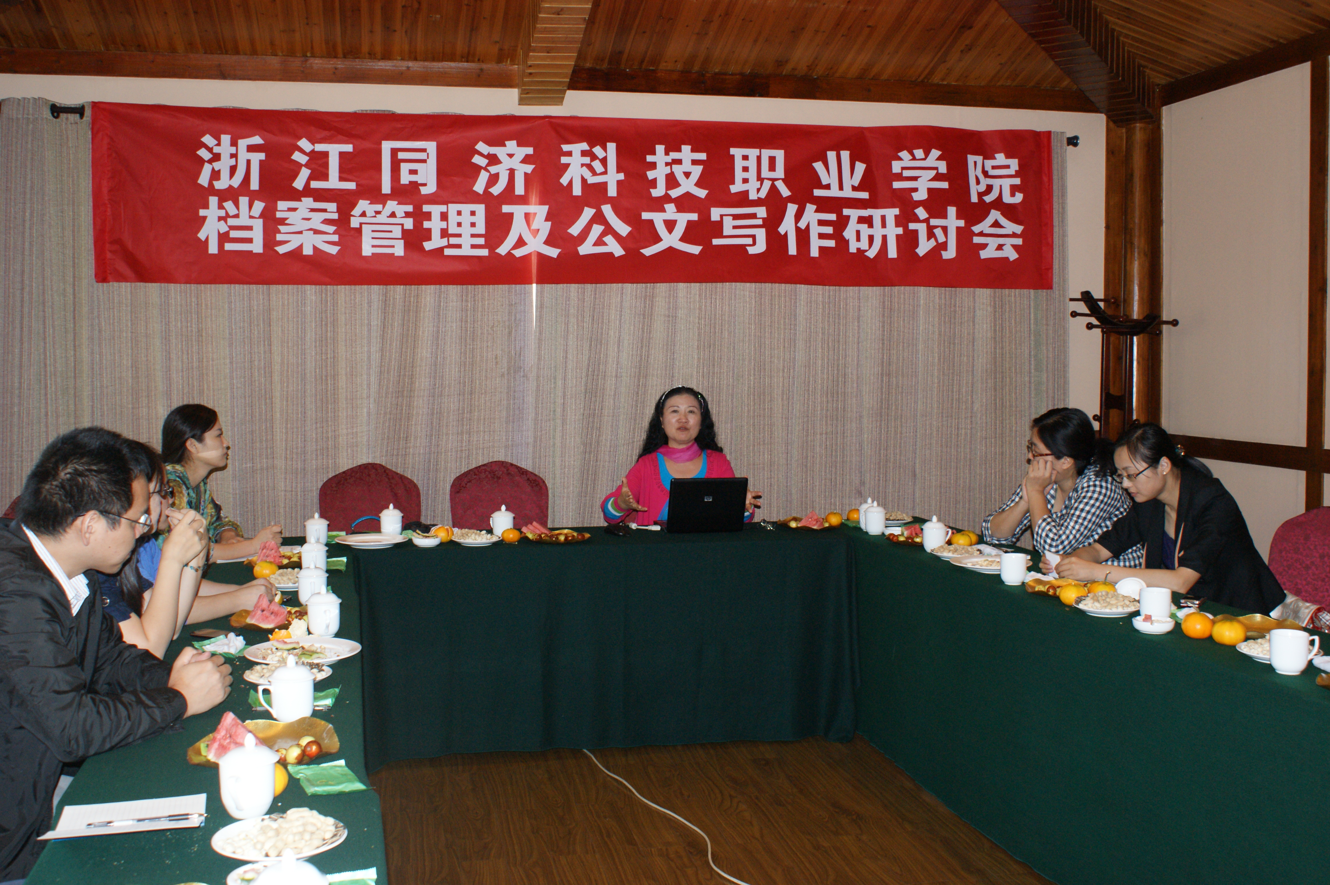 为进一步提高档案管理水平和公文写作能力,10月12日,学院召开了档案管理及公文写作研讨会,会议特别邀请中国计量学院外国语学院副教授连红做了有关“三部曲十步法基层档案集成管理模式”的专题讲座。学院纪委书记、副院长沈燕、办公室及系部相关人员等参加了此次研讨会。