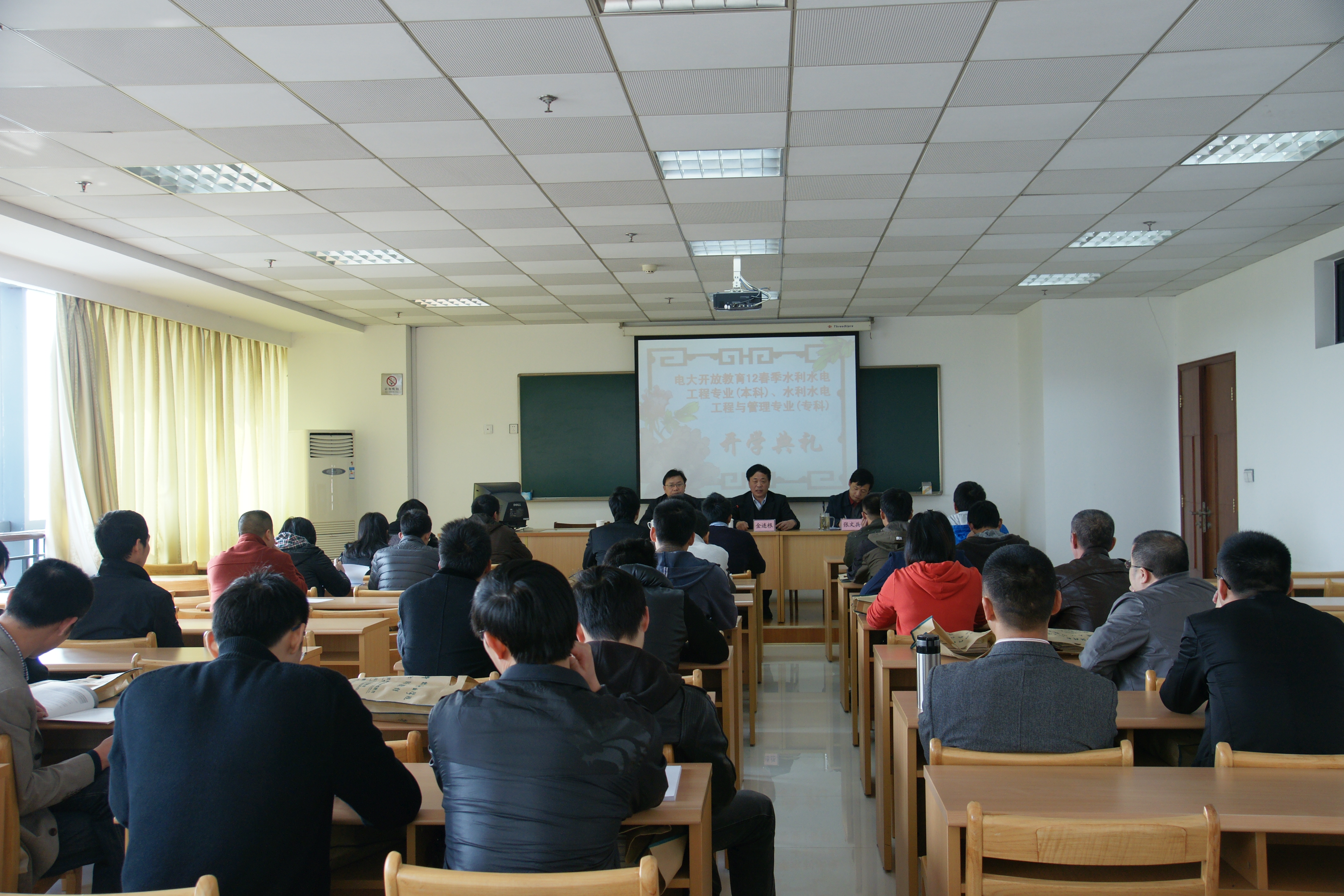 浙江广播电视大学水利水电教学点开放教育2012春季班水利水电工程专业本科、水利水电工程与管理专业专科开学典礼于3月31日上午在学院行政楼206教室举行。开学典礼由继续教育学院院长沈自力主持,学院党委委员、干校副校长金连根、继续教育学院成教部主任张文兵参加了典礼。