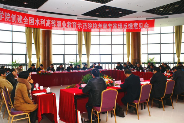 在考察反馈会上,专家组成员余爱民教授宣读了全国水利高等职业教育示范院校建设单位考评意见。专家组对学院办学给予了充分的肯定。希望学院在新一轮高职教育改革发展中发挥示范引领作用,也希望水利厅和教育厅能一如既往地关心支持学院建设与发展。