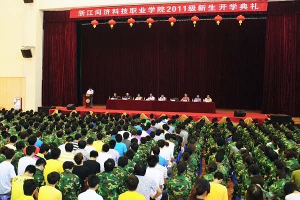 9月15日上午,学院在文体中心举行2011级新生开学典礼。院领导丁坚钢、叶舟、陈长生、郑贞宝、沈燕、金连根、吴宏平、郭雪莽、刘志华出席典礼。全体2011级新生及新生班主任、系辅导员等参加典礼。典礼由院党委副书记陈长生主持。