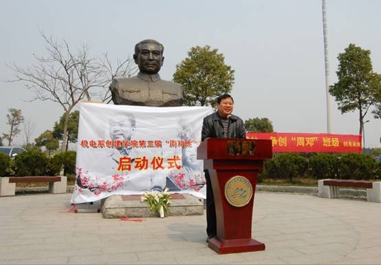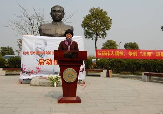 3月11号下午,机电系创建学院第三届“周恩来班、邓颖超班”活动启动仪式在周恩来铜像前隆重举行。院党委书记丁坚钢、院团委副书记黄暖、机电系党总支副书记、副主任金永琪、各辅导员、班主任及各班团干部参加了此次活动,仪式由系办主任王伟主持。