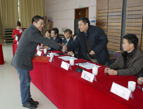 院党委书记丁坚钢代表学院对新来的院领导表示欢迎,劳功权组长向与会干部介绍了四位领导的简历,他希望学院上下能团结一心,在厅党组的带领下,借助这次干部调动的契机,促进学院更好更快地发展。