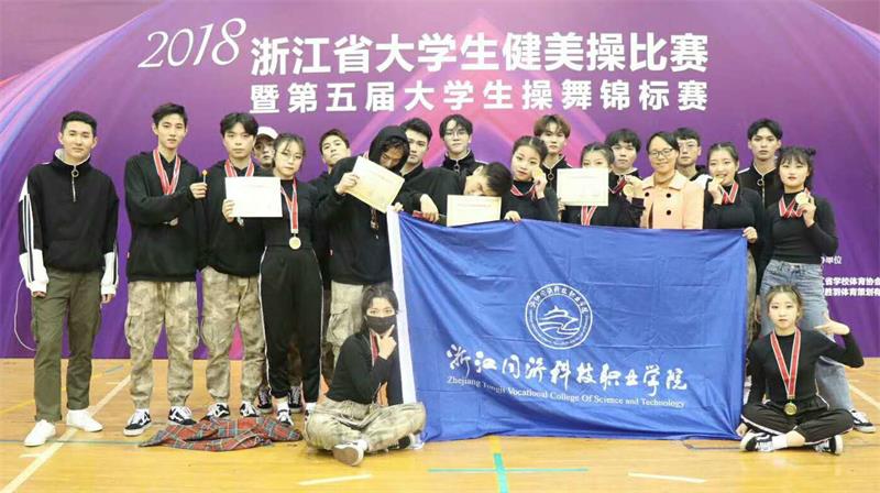 近日,浙江省第十五届大学生运动会、浙江省大学生健美操比赛暨第五届大学生操舞锦标赛落下帷幕。我院代表队在领队基础部主任吕兴虎,总教练章永健,教练顾红伟、陈正强、宋卫军、陈巧燕、冯杰荣老师的悉心指导下,与来自全省各高校的代表队展开激烈角逐。最终,经过奋勇拼搏,学院代表队在大运会羽毛球赛事中勇夺男子双打第一名,男子单打第二名;武术锦标赛中获得南拳第六名;篮球队进入浙江省大运会男子组前16强;乒乓球队获得全国高职锦标赛第九名。在操舞锦标赛中,获得Street Jazz第一名,Hip hop第二名,综合风格第三名。陈正强与陈巧燕两位老师被评为优秀教练员。