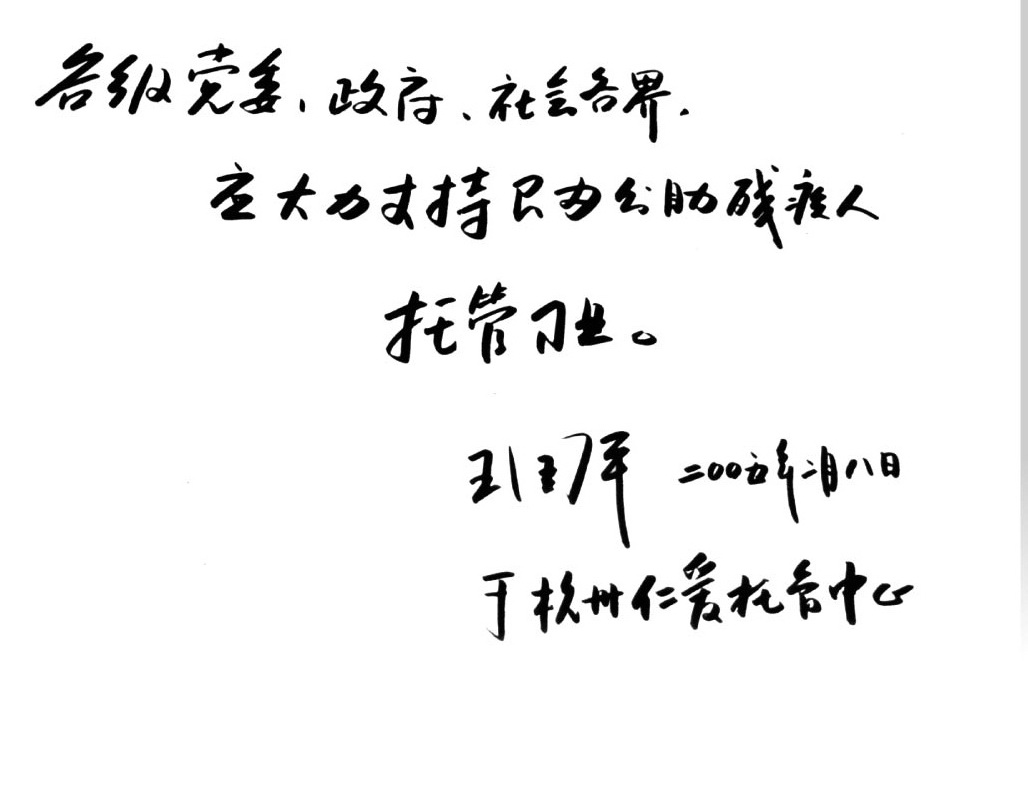 原中共浙江省委常委、杭州市委书记、市人大常委会主任王国平题词