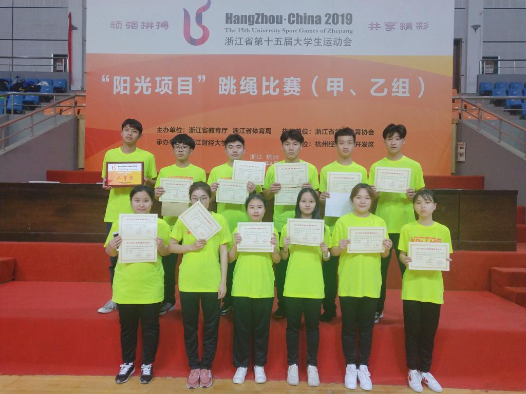 4月27日,浙江省第十五届大学生运动会“阳光项目”竞赛落下帷幕。经过与全省高校近3000名运动员的激烈角逐,我院代表队最终勇夺女子30秒单摇跳与旋风跑两个项目的一等奖,同时获得二等奖6个,三等奖3个。