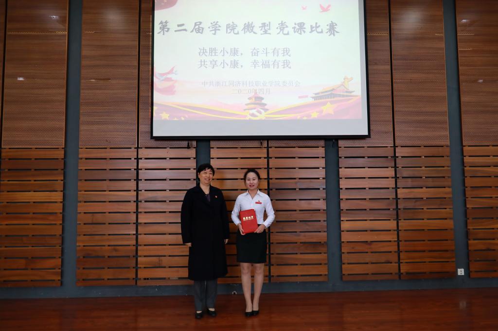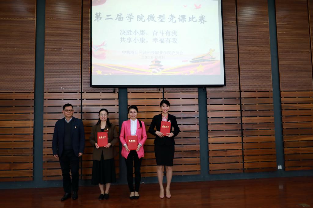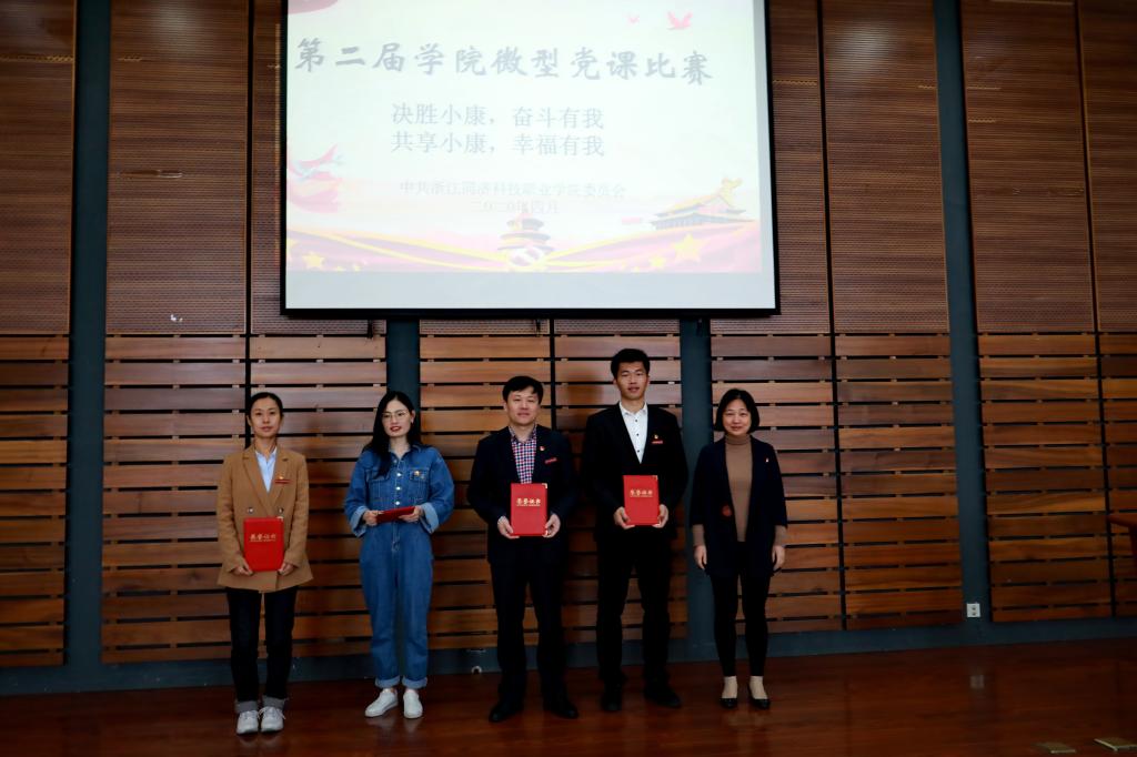 最后,江影书记宣布获奖结果。基础部直属党支部徐晶晶荣获本次大赛一等奖,并将代表学院参加省委教育工委第六届全省高校微型党课大赛,王超群、陈施施、施鸿荣获二等奖,罗志洁、陈福运、李瑞玲、张春平荣获三等奖。