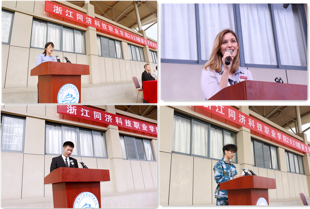 2020年学院优秀教师获得者水利系金斌斌,学院外籍教师何丽娜(Nadia Hoadley),工管系09届毕业生、杭州风华因尔美学校校长汪贤明,国家励志奖学金、学院一等奖学金获得者、优秀学生干部机电系徐顺程分别与新生分享了自己在同科工作学习的收获,介绍自己育人、创业、成长等方面的经验心得等。“笃学”新生奖学金获得者艺设系郑志啸发出“新”声,他感谢了学院师生在入学这几天的悉心关怀和帮助,表示定会向优秀学长学姐们学习,苦练技能,不负韶华。
